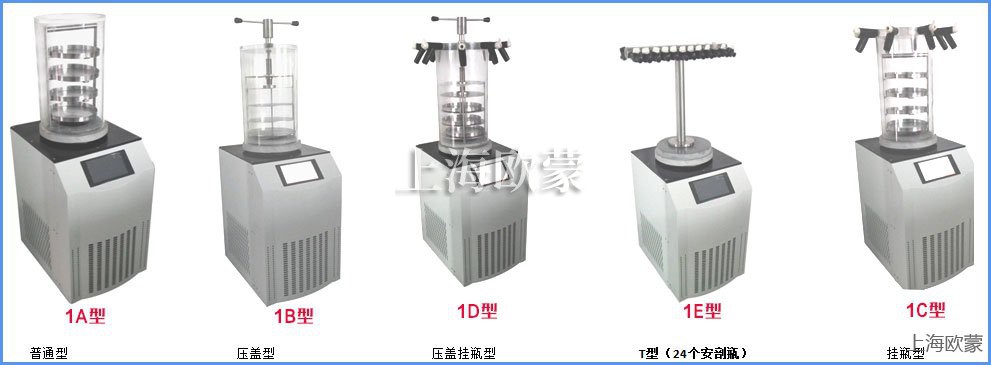 冷凍干燥機規格:FD-1A-50普通型、FD-1B-50壓蓋型、FD-1C-50多歧管普通型、FD-1D-50多歧管壓蓋型、FD-1E-50 T 型架